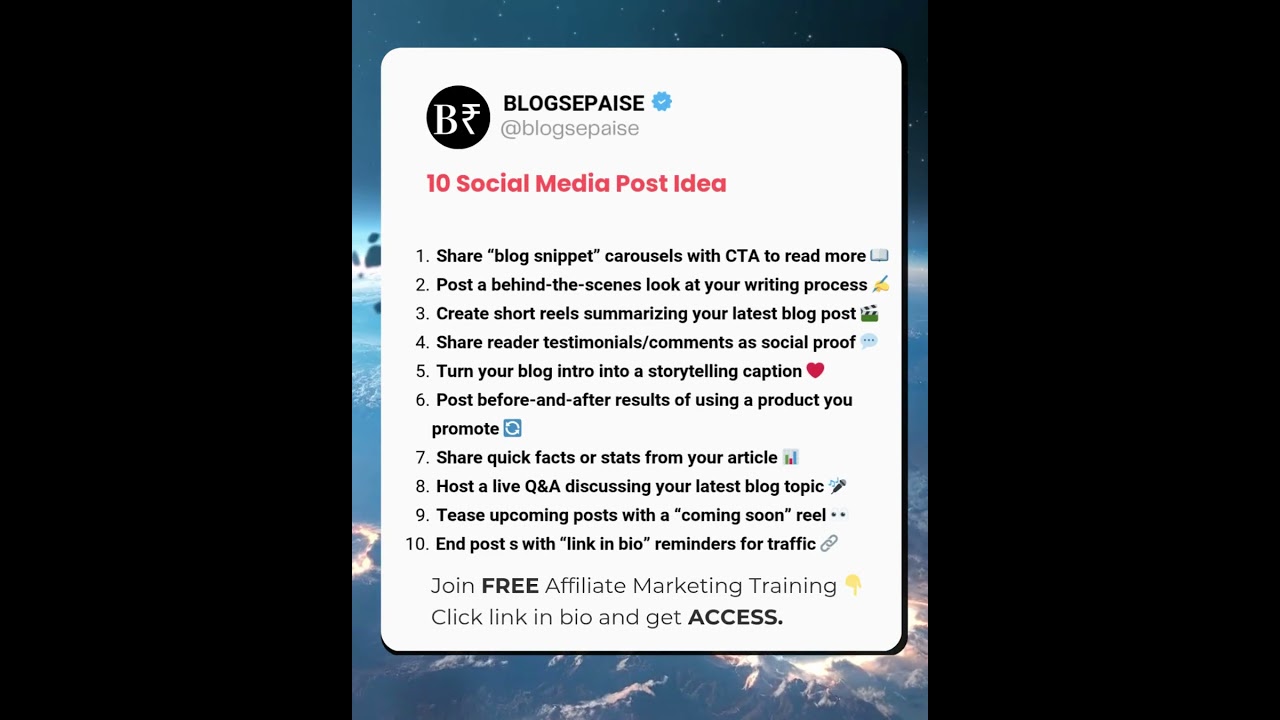 10 Social Media Post Ideas That Send Readers Straight to Your Blog by admin February 15, 2026 11 Check on YouTube FacebookTwitterPinterestEmail You may also like How to Make USA Based AI Videos in... March 4, 2026 5 Genius Ways to Make Money From Home... March 2, 2026 99% Youtubers Don’t Know these HIGH-PAYING Channel Ideas... March 1, 2026 Create Blog Post Ideas With AI Using Langflow February 28, 2026 I'm Broke, What Business Do I Start? February 26, 2026 Watch Me Use AI to Create 30 Days... February 24, 2026 Making a Roblox Game with YOUR Comments |... February 23, 2026 Struggling With Blog Ideas? This Free SEO Tool... February 20, 2026 make money online blog content ideas February 19, 2026 Make $400/Day Selling eBooks Online (HOW TO START... February 18, 2026